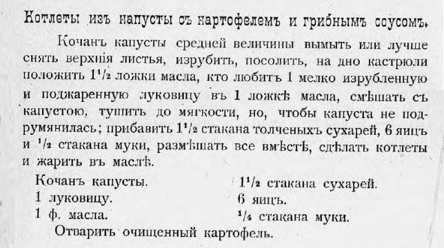 В то же самое время в городе процветали рестораны, в которых подавали дореволюционные деликатесы и текло рекой шампанское. Одно из самых дорогих заведений, популярное у зажиточной публики, называлось «Подполье», и там выступал Александр Вертинский. Богема предпочитала собираться в кафе «Трамбле» на Цветном бульваре, которое славилось сдобными булочками. А на Тверской улице работала вегетарианская столовая «Я никого не ем», в которой можно было отведать котлеты из капусты с картофелем. Узнав об этом, редакция «Еды без границ» решила восстановить это блюдо в максимально аутентичном виде. Для этого мы призвали на помощь кулинара и историка русской кухни Ольгу Сюткину. Поискав в своих архивах, она нашла подходящий старинный рецепт.