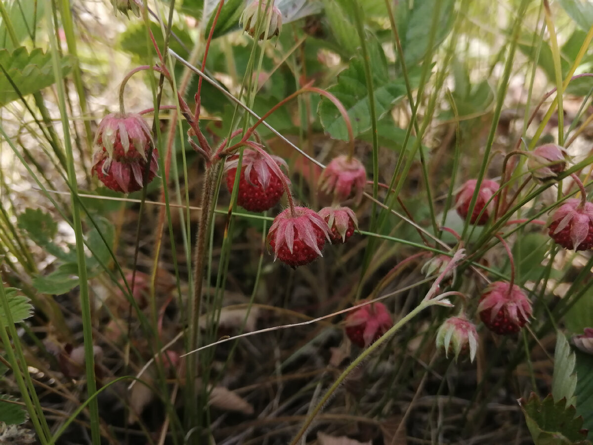 Прибыли мы ровно на то же место, где объедались этими великолепными и ароматными ягодами в июле прошлого года. Результаты в этот раз оказались весьма скромными. конечно, мы рано приехали, время массового сбора луговой клубники ещё не пришло, но всё-таки ягод даже зелёных наблюдалось значительно меньше, чем хотелось бы. Немного пощипали, насколько хватило терпения, в основном в рот, но и в корзину что-то попало )).