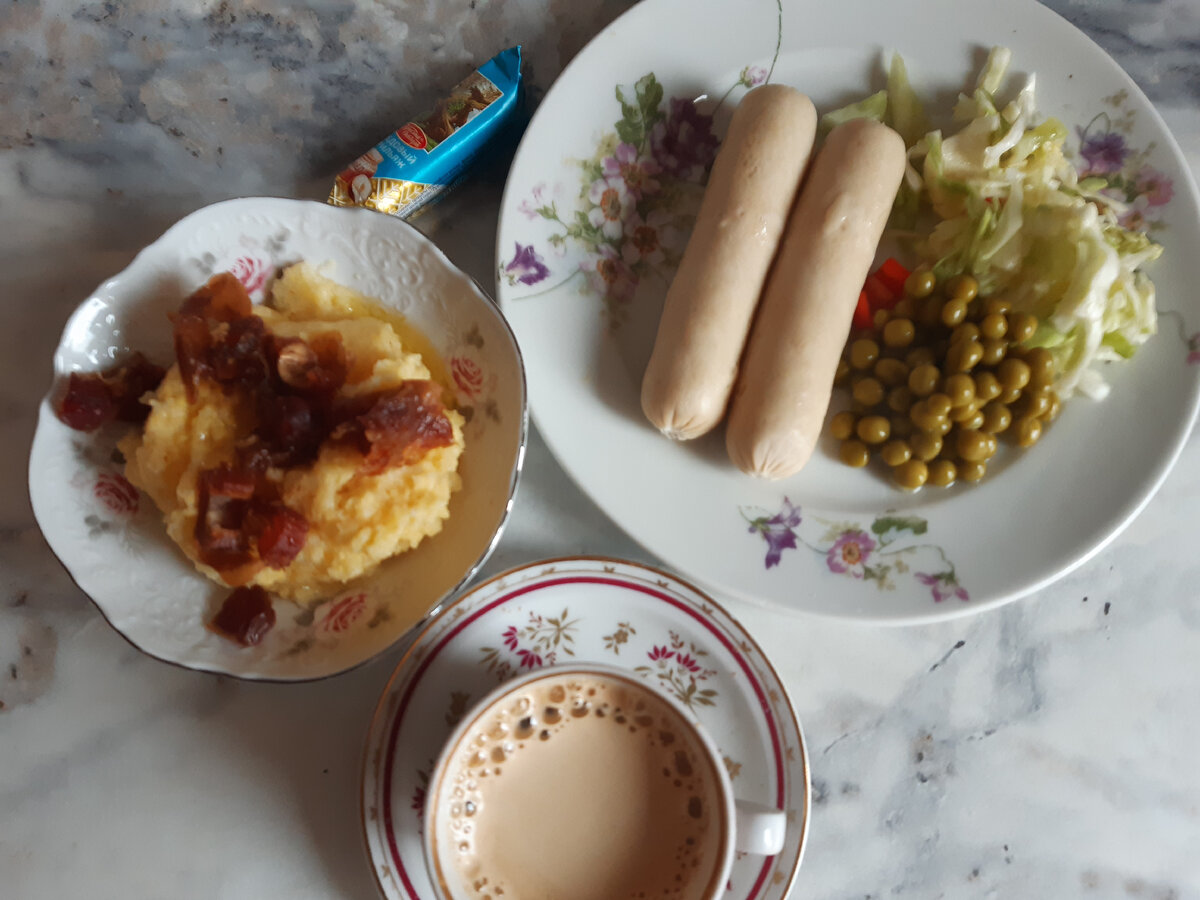 В июне продолжаем питаться экономно и вкусно на небольшую сумму. О запасах на начало месяца и расчете суммы на питание можно узнать ЗДЕСЬ Покупка продуктов 1 -Вкусвилл, Метро, Перекресток Покупка продуктов 2 -Смарт, рынок, WB, Озон, Вкусвилл Покупка продуктов 3 - Вкусвилл, рынок, КБ, Пятерочка, Смарт Покупка продуктов 4 - Магнит, Озон, Ашан, Вкусвилл Все рецепты можно найти в КАТАЛОГЕ РЕЦЕПТОВ На самом деле 9-й день уже условно: завтрак и ужин целиком еще из прежних запасов. Обед тоже мог бы быть из запасов, их хватило бы. Но поскольку мы с сыном днем съездили в Светофор и Вкусвилл, на обед мы уже расслабились и съели пару продуктов из новых покупок. Если бы их не было, то и сегодня бы продержались. Да и завтра, если честно, тоже. Но уже нужны были фрукты и овощи. На завтрак сборная каша из пшена и поленты с топленым маслом и финиками. Сосиски с овощным салатом и зеленым горошком. Кофе и конфетка. На обед - манго и кофе с творожным сочником на ужин запекла ленивый голубец-запеканку,