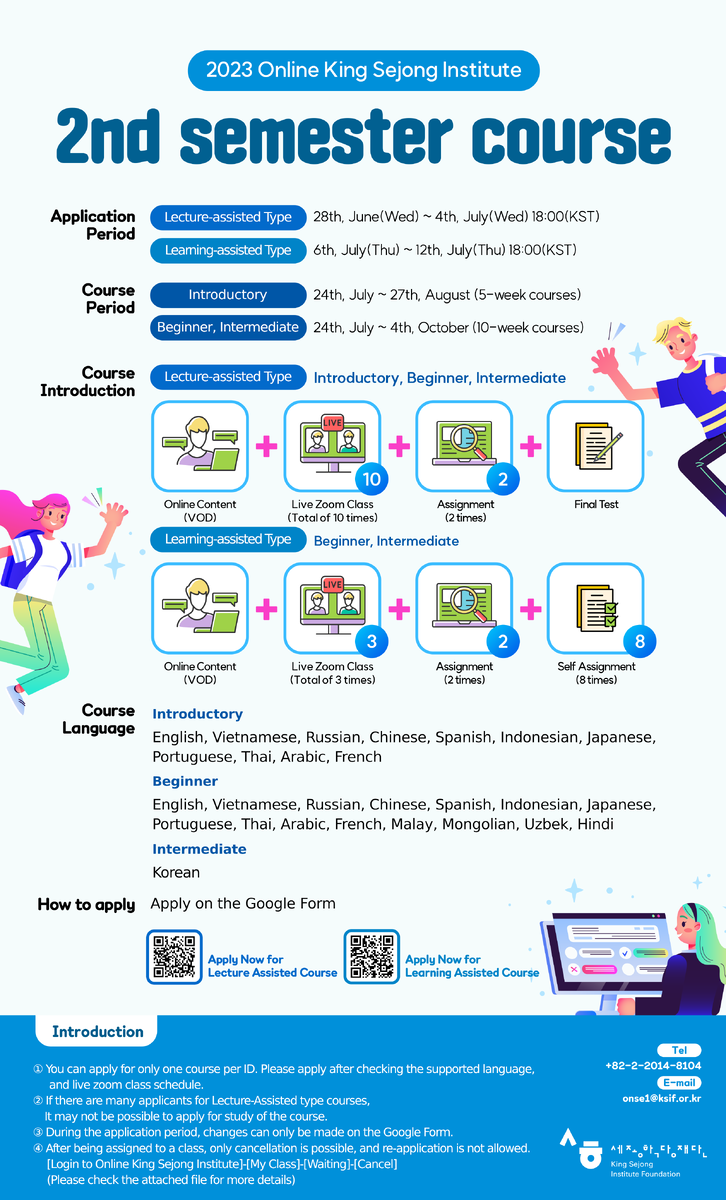 Добрый день, дорогие читатели. Увидела на сайте Сэджона объявление о новом наборе на онлайн-курсы. лекционный тип с поддержкой: 28 июНя - 4 июЛя 18:00 (корейское стандартное время (это 12:00 по мск) обучение (самостоятельное) с поддержкой: 6 июЛя - 12 июЛя 18:00 (корейское стандартное время (это 12:00 по мск) вводный: 24 июЛя - 27 августа (5 недель) начальный, средний: 24 июЛя - 4 октября (10 недель) 1. Вы можете подать заявку только на один курс на один ID. Пожалуйста, подавайте заявку после проверки поддерживаемого языка и