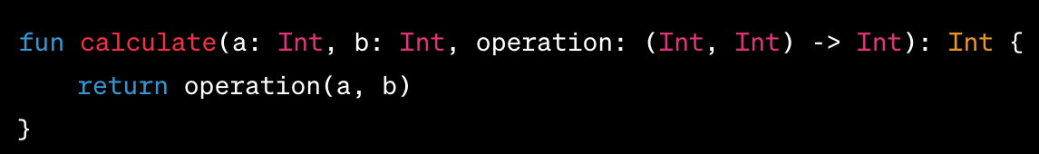 В этом примере у нас есть метод calculateResult, помеченный как "inline". Он принимает два числа a и b, а также функцию operation, которая принимает два числа и возвращает какое-то число. Функция calculateResult вызывает переданную функцию operation с числами a и b и возвращает результат.