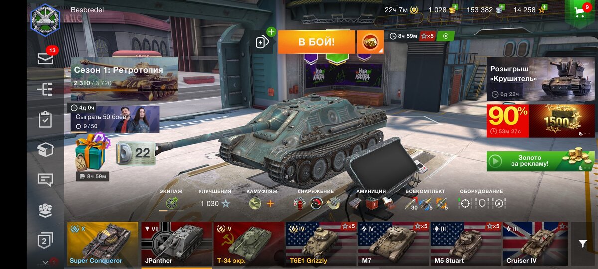 Хочу с вами поделиться о такой неприметной ПТ - САУ 7 уровня, как JPanther. Поиграл пару десятков боёв, довёл до ТОПа, собрал своё впечатление в кучу и бегу рассказывать вам, что да как. ТТХ JPanther Бронепробиваемость орудия: Скорость полета не вызывает никаких неудобств, но и не самая выдающаяся. Пробития, как вы видите, на своём уровне хватает, но с 8 уровнями, особенно с тяжёлыми танками, будет уже посложнее. Но для этого есть и голдовый снаряд, так что выход есть всегда) Про броню на этой ПТ можете забыть. Единственное на что вы можете рассчитывать, это рандомным образом как-то отбить снаряд, потому что в некоторых местах броня, хоть и немного, но есть (также благодаря угловатой формы рубки) Динамики для ПТ хватает. Поменять позицию, либо же быстренько прилететь на помощь союзникам вы сможете. Оборудование, снаряжение и амуниция Все на скринах. Итоги игры на JPanther: Если вкратце, то ПТ более чем приятная. Танк, на котором даже можно немного отдохнуть. Рекомендую обрати
