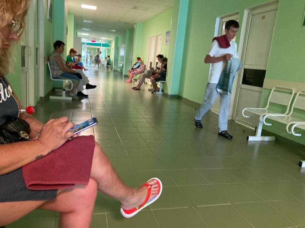 Очередь на процедуры, надо сказать, бывала только тут и то короткая. Наверное, очередь потому, что после приёма этой лечебной грязи еще столько же времени, сколько уходит на приём процедуры, уходит на то, чтоб смыть грязь. Это не из рапы выскочил, в трусы с разбегу впрыгнул и дальше пошёл.