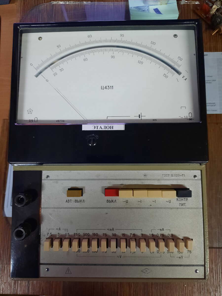А ну ка малыши, подвиньтесь! Приветствую Вас любители HI-FI & VHS! В моём парке измерительных аналоговых приборов пополнение. Сегодня у нас ампервольтметр Ц4311, он предназначен для измерения тока и напряжения в цепях постоянного и переменного токов частотой 45...16 000 Гц. Эти приборы получили широкое применение в лабораториях, специализирующихся на ремонте и обслуживании различной радиоаппаратуры. Также ампервольтметр ц4311 эффективно применяется в качестве вспомогательных систем контроля при поверке и аттестации других измерительных приборов. Отличительной чертой комбинированного устройства Ц4311 является то, что в его составе одновременно используются две измерительные системы – вольтметр и амперметр. Используемые измерительные механизмы относятся к магнитоэлектрическим системам с магнитом внешнего типа. Прибор реализован в виде корпусного устройства со стрелочным указателем, расположенным на лицевой панели под стеклом. Также на этой панели расположен ряд функциональных клавиш, с п