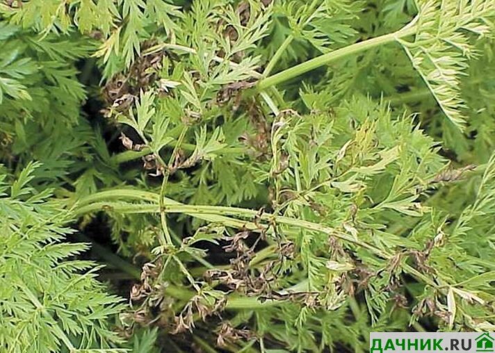 - Поливая морковь сильным напором воды, очень просто повредить ботву растения, что в последствии станет причиной её засыхания.