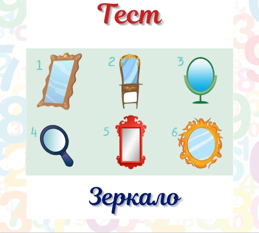 💚Психологический тест "Зеркало".💚 Откройте для себя истинное отражение вашей личности. "То, что мы считаем внешними проблемами, почти всегда является проекцией внутренних конфликтов", - предположил великий психоаналитик Карл Густав Юнг. Почему личностный тест, основанный на выборе образа, может раскрыть что-то из нашей души и личности? Каждый образ, с которым мы сталкиваемся во внешнем мире, а также в мыслях и фантазиях, сразу же вызывает в нас чувство (положительное или отрицательное). Эта психосенсорная стимуляция влияет на наше восприятие жизни и эмоций. Ощущения никогда не бывают случайными, у каждого из нас есть «зеркало», скрытое в подсознании, где, если мы порога, мы можем видеть истинное отражение наших эмоций. Если бы у вас была возможность посмотреть на себя в зеркало среди 6 предложенных на рисунке ниже, какой из них вы бы выбрали? ЗЕРКАЛО 1 Вы стремитесь к свободному и нонконформистскому образу жизни, который позволяет вам самостоятельно определять ход ваших проект