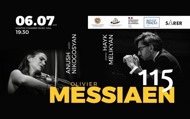 Армянские музыканты Айк Меликян (фортепиано) и Ануш Никогосян (скрипка) выступят в Ереване по случаю 115-летия со дня рождения французского композитора Оливье Мессиана, сообщает tomsarkgh.am. Концерт пройдет в Доме камерной музыки им. Комитаса 6 июля. Начало – в 19:30. Во время концерта выступит посол Франции в Армении Энн Луйо, а музыканты исполнят произведения, посвященные композитору. В рамках мероприятия прозвучат три пьесы из цикла «Двадцать взглядов на Младенца Иисуса» (1944), «Голубь» (прелюдии для фортепиано, 1928-1929), «Хвала бессмертию Иисуса» для скрипки и фортепиано, «Тору Такемицу» (1930–1996), «Эскиз дождевого дерева II» (1992) и другие произведения Мессиана. «Концерт имеет символическое значение, учитывая армяно-французские дружеские отношения и необходимость популяризации творчества великого композитора в нашей стране», – отметил организатор и продюсер концерта Александр Плато Акопян. Стоимость билетов – от 2000 до 5000 драмов. Возрастное ограничение: 6+.