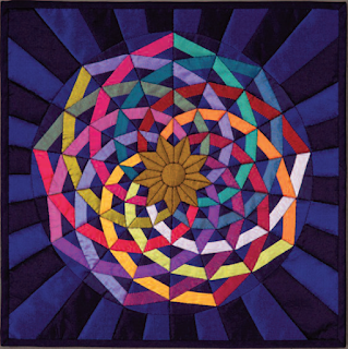 В первую очередь сшивают закругленные треугольники по боковым частям, а круг в серединку вшивают после сборки этих цветных частей.