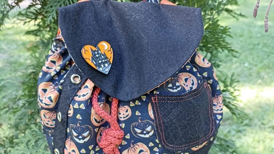 Разнообразие магазинных рюкзаков не всегда удовлетворяет нашим потребностям. Иногда хочется чего-нибудь эдакого, индивидуального, не такого, как у всех. А непохожую вещь можно создать только собственными руками. Этот пост — для любителей необычных мини-рюкзачков. В него не поместится ежедневник А4, кофта или бутылка воды. Но для создания твоего неповторимого образа – это идеальный вариант. Выкройка такого мини рюкзачка проста и доступна, а сшить его не составит особо труда. Этот рюкзак создан по тыквенным мотивам, но вы можете использовать любую идею! Это могут быть котики, домики или тачки. Материалы для пошива: Краткий процесс создания мини рюкзачка Для начала, нам, конечно же, понадобится выкройка рюкзачка. И вот она, с размерами, печатается на А4. Выкройка рюкзачка Начинать пошив можно, в принципе, с любой детали, которая вам больше нравится. Верхний клапан. Выкраиваем 3 детали – из однотонной ткани, из цветной, и из паутинки. Складываем их лицевыми сторонами друг к другу, простра