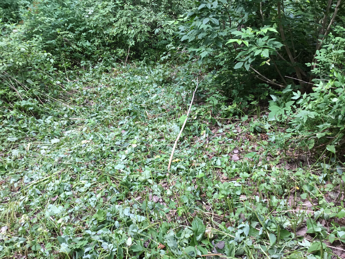 В овраге заросли травы выше меня. Потихоньку кошу, собираю траву и буквально утыкаюсь в