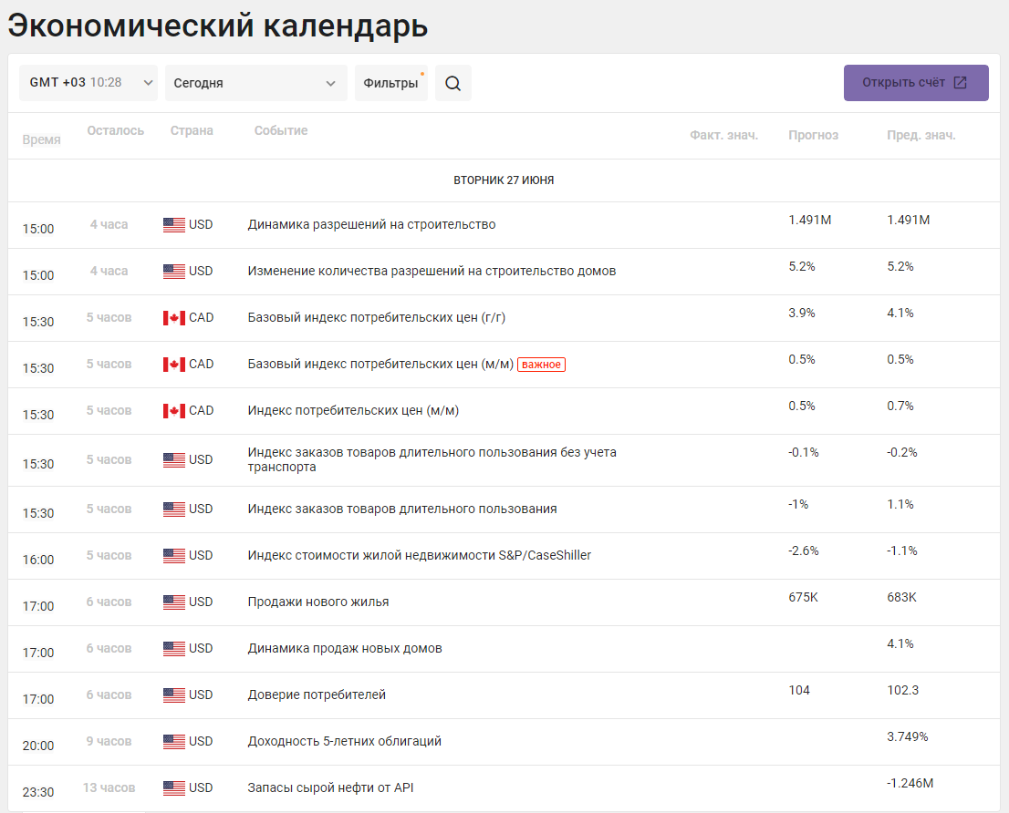 Президент Европейского центрального банка (ЕЦБ) Кристин Лагард выступит со вступительной речью на открытии ежегодного Форума ЕЦБ по центральным банкам, а позднее сегодня несколько представителей ЕЦБ дадут комментарии по вопросам политики и инфляции. Экономическая повестка дня в США будет включать заказы на товары длительного пользования и продажи новых домов за май, а также индекс потребительского доверия CB за июнь.