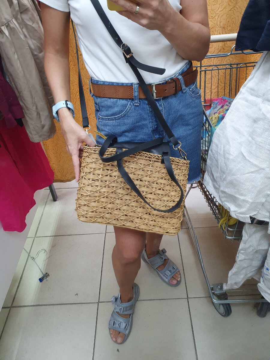 Всем привет. Меня зовут Марина и секонд хенд-это моё хобби. С удовольствием брожу по секондам в поисках интересных вещей. Сумки мне редко попадаются, но в день завоза можно что-то успеть взять. Неделю назад на завозе попалась сумка плетеная. В отличном состоянии. Материал похож на натуральный. цена 500р. Конечно я ее купила Сумка из натуральной кажи, темно зеленого и черного цвета. На фото разницы не видно, но кожа разных цветов.цена 1000р, тоже взяла А вот сумка светло рыжего цвета за 1000р осталась в магазине Еще я купила шелковый платок. На бирке было написано Kenzo. цену уже не помню А вам часто попадаются хорошие сумки в секонде? Благодарю за внимание!