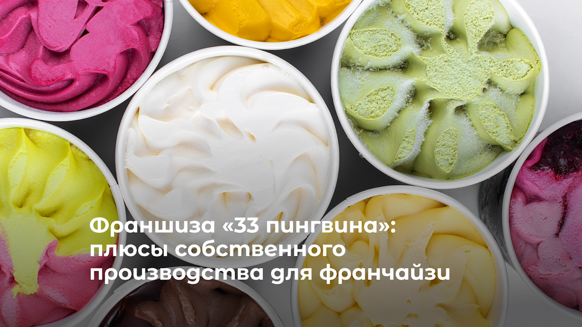 ТМ «33 пингвина» — крупнейшая франчайзинговая сеть кафе и точек продаж мороженого, десертов и напитков собственного производства.