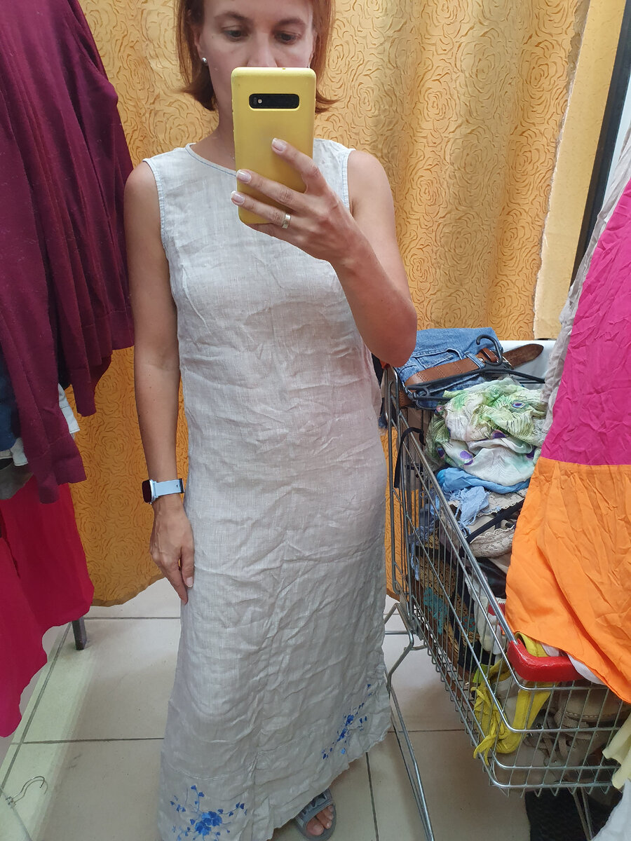 Доброе утро! Меня зовут Марина и секонд хенд-это моё хобби. Секонд хенд- это скорее не про дешевую одежду, а про какие-то эксклюзивные находки, которых ни у кого нет, только у вас)) Платьев много не бывает , ну как и остальной одежды. В моем гардеробе много летних платьев, осень и зимой предпочитаю больше брюки и джинсы. Из этой подборки я купила только одно платье. Предлагаю вам угадать какое. Пишите в комментариях! Длинное платье из льна. цена 500р Платье Marella, но состав подкачал. Это 100% полиэстер. цена 500р Синее платье с отрезной талией на резинке. В составе 40% шелка. цена 750р И платье из хлопка. Внизу цвет светлый хаки, сверху светлый с принтом в цвет нижнему слою. Смотрится странно, но если его разгладить, то будет смотреться хорошо. Что же я купила?)) Благодарю за внимание!