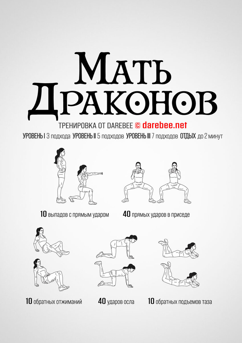 Новый релиз — Мать Драконов — это тренировка для всего тела от Darebee, которая поможет вам оставаться подтянутыми и чувствовать себя бодро. https://darebee.net/mother-of-dragons-workout.html ЦЕЛЬ: все тело ТИП: сила СЛОЖНОСТЬ: 3 — подходит для начинающих