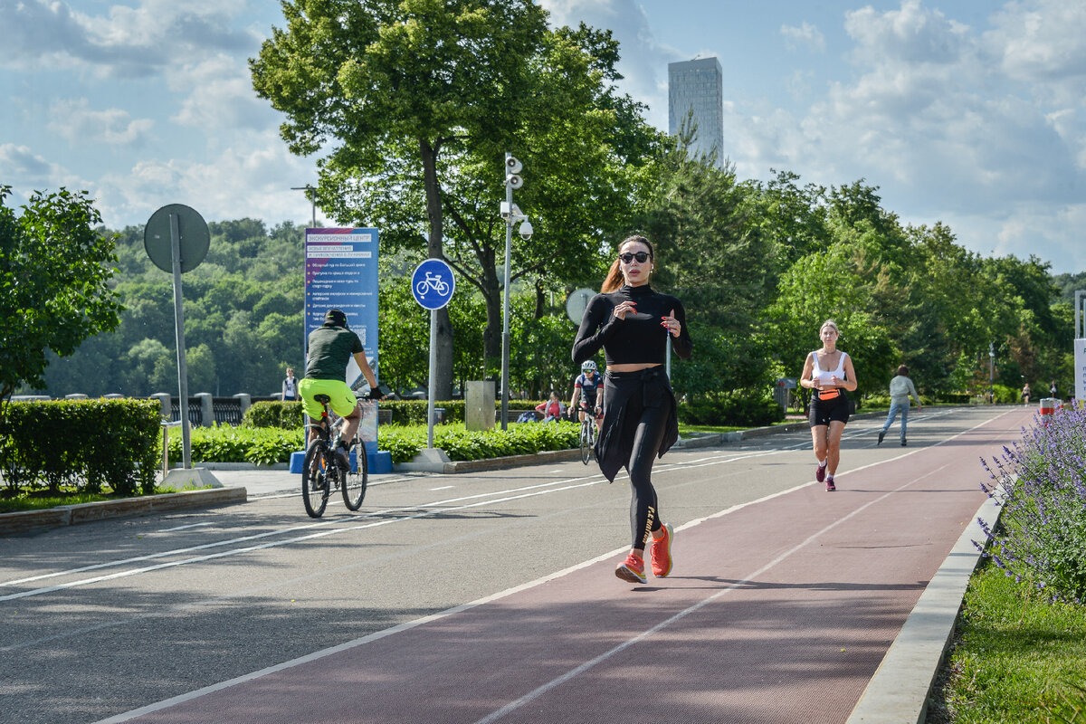 Лужники удобны и тем, кто предпочитает велосипед. Обустроенные дорожки вдоль набережной Москвы-реки протягиваются от парка «Музеон» до Парка Горького, Нескучного сада и в сторону Лужников, прокатившись по всему олимпийскому комплексу. Для велосипедистов размечают дорожки, чтобы потоки тех, кто едет быстро, не пересекались с теми, кто гуляет или бежит. Это правила и безопасность для всех.