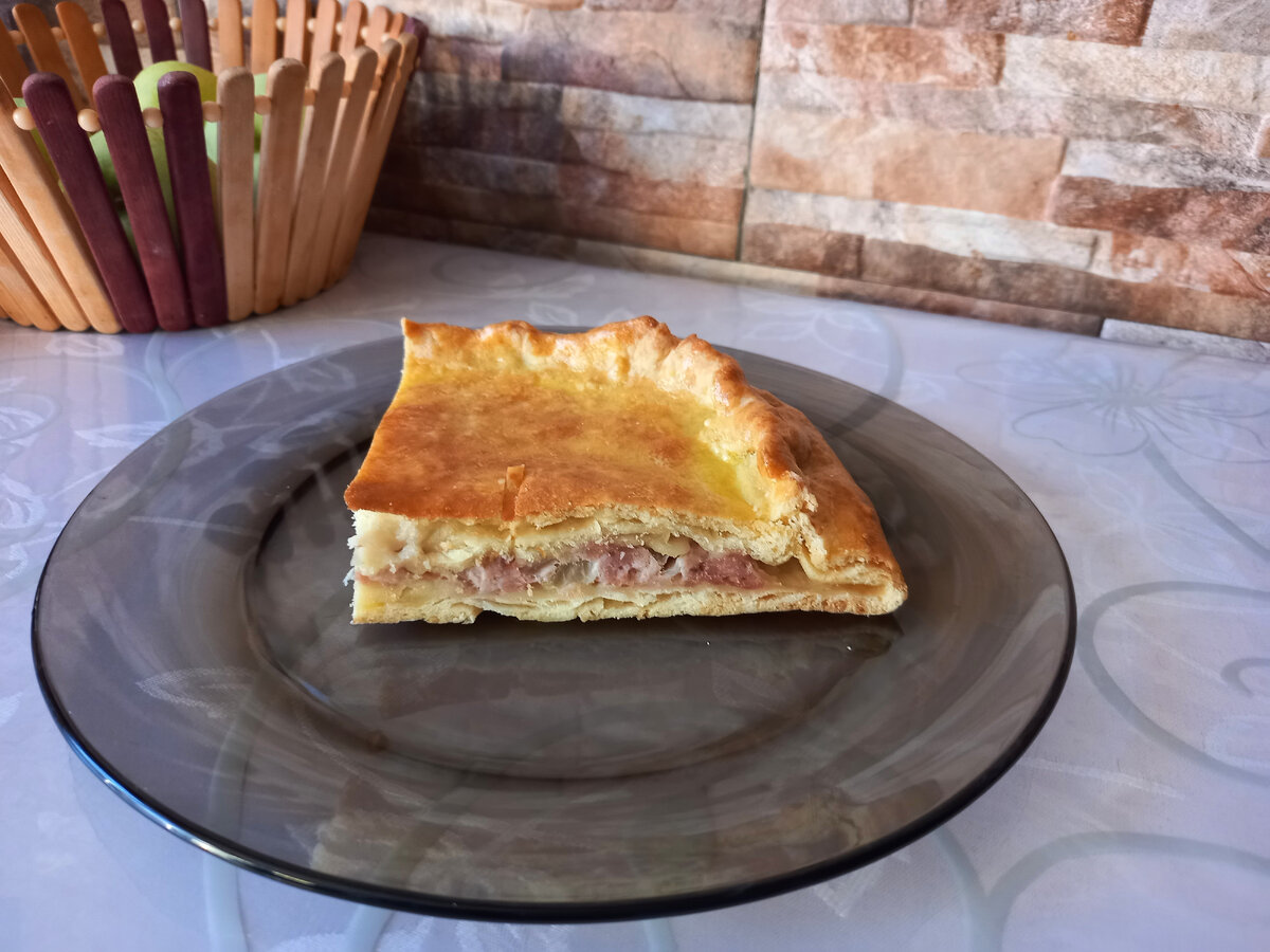 Этот пирог очень любят мои мужчины. Он просто вкусный! А для меня важно то, из чего он создан 😉. Быстрый и вкусный пирог Тесто для пирога можно сделать за 10 минут, ещё 30 минут над ним работает духовой шкаф — и можете звать близких к столу! Ингредиенты Мука — 3 ст., Масло растительное — 1/4 ст., Рассол огуречный — примерно 200 мл (можно заменить раствором 200 мл воды, 1/2 ч.л. соли, 1/2 ч.л. сахара, 1/2 ч.л. уксуса), Соль — 1/2 ч.л., Сода — 1 ч.л с горкой, Фарш индейки — 0,5 кг, Лук репчатый — 1-1/2 головки. Приготовление фарша Рубим лук кубиками, смешиваем с фаршем, солим, перчим, добавляем специи. Готово! Переходим к тесту. Приготовление теста 1. В чашку с высокими краями всыпаем 3 ст. муки, соль, соду, перемешиваем. 2. Постепенно вливаем в муку растительное масло, смешиваем с мукой щипковыми движениями. 3. Постепенно вливаем рассол с краю чашки, также смешивая с мукой и маслом щипковыми движениями. Замешиваем тесто консистенции песочного. Делим его на 3 части: 2 части пойдут на н