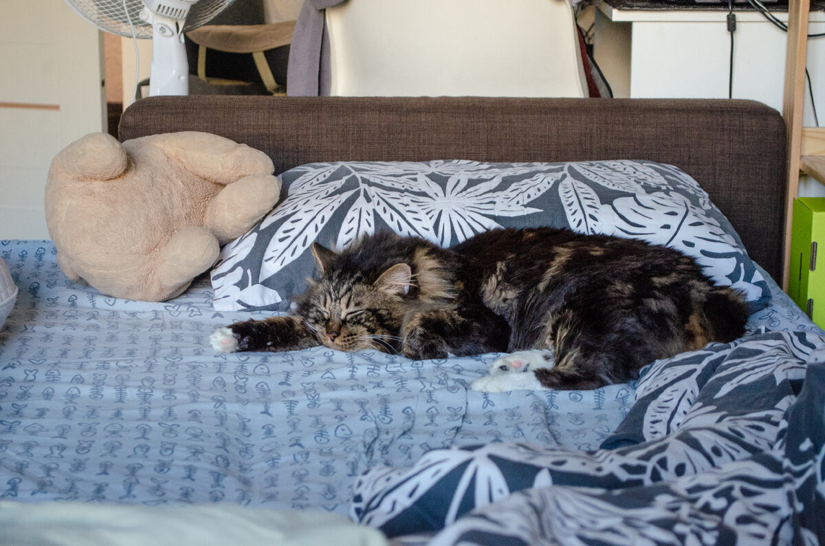 Да, вы были правы, пока муж был у отъезде, я свой сон практически наладила. Потом, правда, поломала опять, самостоятельно устроив себе стресс, но это детали.🙃 На природе одну ночь спала без снотворного, остальные уже нет. Дома устроила диктатуру, чтобы в полночь было темно, тихо и спокойно. Муж сопротивляется изо всех сил, но я настроена так, будто от этого зависит моя жизнь.😈 Она и зависит. Принимаю то снотворное, то миорелаксант, то даже ничего. Прикол в том, что я теперь в 10-11 просыпаюсь буквально сама и легко. Может быть, потому что сейчас много света, белые ночи и вот это всё, но так-то у нас шторы блэкаут, по идее, не должно влиять. У этого пушистого товарища вот никаких проблем со сном нет.🖤 Он, кстати, радуется, если я ночью проснулась и лежу. Приходит нежничать.