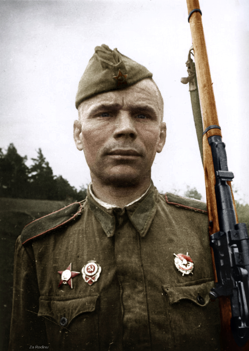 Снайпер Хандогин уничтожил 182 вражеских солдата и офицера, прошел всю Великую Отечественную. Он начинал свой путь как обычный пехотинец, но вскоре обратил на себя внимание командования и получил новую винтовку с оптическим прицелом. В бою он потерял фалангу указательного пальца, но все равно продолжал метко разить врага. Рассказываем, что помогло Гавриилу добиться выдающихся результатов и как он при штурме Берлина спас знамя полка. На фронте Хандогин родился в селе Вершино-Рыбное Красноярского края в 1904 году. В первые дни Великой Отечественной он вступил в ряды Красной Армии. До войны Гавриил был охотником, добывал пушного зверя — соболя, горностая, белку. Для успешной охоты требовалось бить зверя прямо в глаз, чтобы не повредить мех. Навыки меткой стрельбы пригодились сибиряку на фронте. Боевое крещение снайпер принял на Северо-Западном фронте. Изначально Гавриил был обычным стрелком, но затем командование оценило его навыки и выдало винтовку Мосина со снайперским прицелом. На фрон