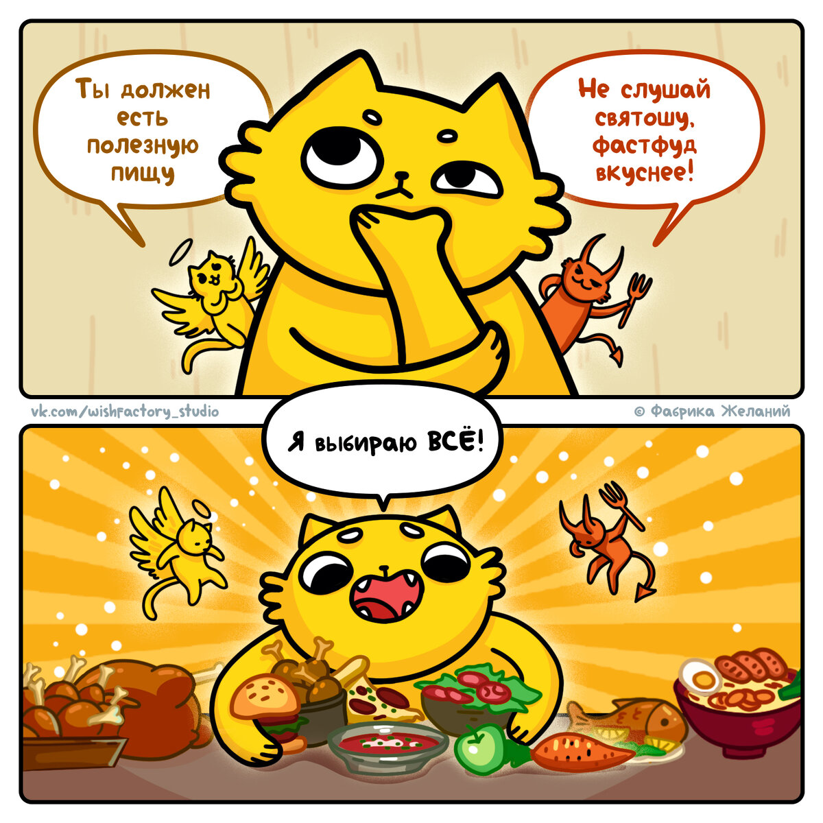Еда - залог здоровья и счастья. Так думает кот Булчик. Ведь еда - это очень здорово и она поднимает настроение. Лишь бы было побольше вкусного.
