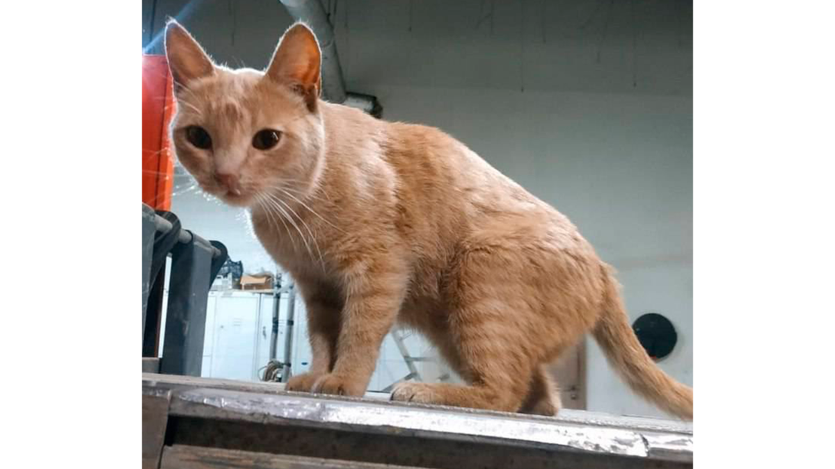 Беременную рыжую кошку выбросили из трейлера недалеко от одной из московских автомастерских. Кошку заметил сотрудник станции, он не смог пройти мимо и забрал ее в мастерскую. Через неделю кошка родила троих котят с редким окрасом.
