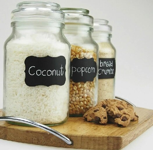 Многообразие маленьких и больших баночек в кухонном пространстве неизбежно для любой хозяйки. Ваша задача — сделать их красивыми. Понятно, что форму мы поменять не можем, но зато легко декорируем симпатичные баночки стильными яркими этикетками. Хранить варенья, джемы, заготовки, консервацию в таких емкостях намного приятнее! И вам не придется каждый раз угадывать, что же находится в вытащенной наугад баночке. Этикетки можно напечатать на компьютере, используя графические программы, а затем проделать отверстия, вставить веревочку и обвязать вокруг основания. Отличная идея, но hand-made – это еще интереснее! Попробуем сделать этикетки в милом стиле прованс, кантри или лофт для декорирования вашей кухни. С чего начать? Подготовьте стеклянные банки (количество не ограничено), канцелярский клей, разноцветные мелки и грифельную краску. Еще вам понадобится глянцевая бумага. Из неплотной бумаги легко и просто вырезаются шаблонные этикетки. Они могут быть любой формы и размеров — на ваше усмотр