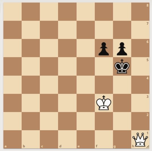 Автор задачи И. Конц, Н. Кокехорн, 1869 год. У черных две пешки. Однако у белых ферзь. Белые начинают и ставят мат в 2 хода. Подписывайтесь, ставьте лайк. Решение смотрите далее. 1. Белые делают ход королем. 1. .................................... черные делают ход королем. Другие варианты пишите в комментариях. 2. Белые ставят мат ферзем на "d5". Следующая задача