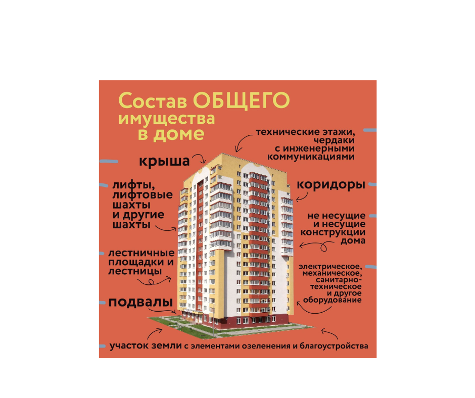 Все общие элементы и объекты, которые находятся в здании или на территории многоквартирного дома и используются всеми жильцами.