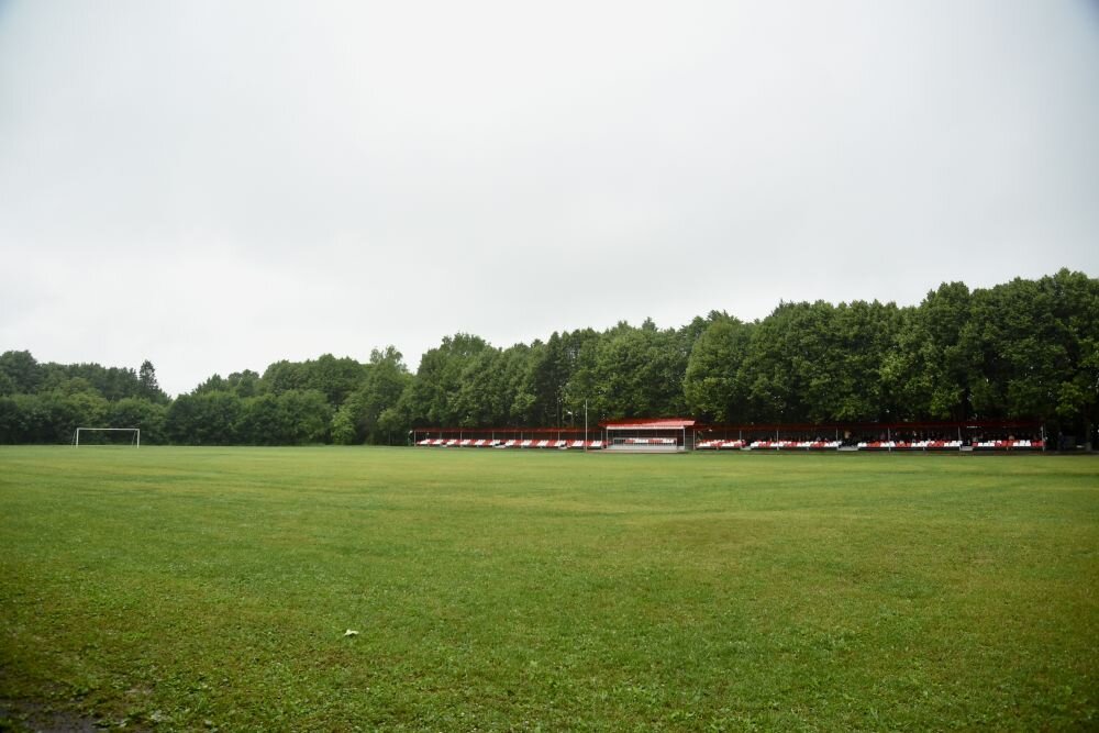 Здесь выполнен демонтаж старых трибун, осуществлен монтаж новых трибун на 600 мест с навесом, ремонт пешеходных дорожек перед трибунами, установка бытовых помещений, опор освещения, замена входных ворот, установка информационных щитов.