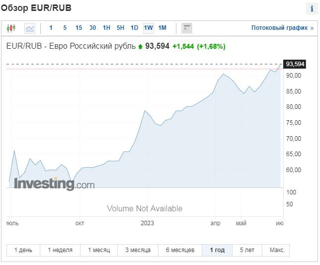 Обратили внимание, что курс Евро перевалил за 93,5, то есть на 60% выше, чем год назад? Кто как думает через год будет евро по 145, учитывая быстроту роста? Наш новый телеграм канал - t.me/...iss Обсуждаем экономику и не только - всех приглашаю обсудить данное событие. Курс Евро к рублю