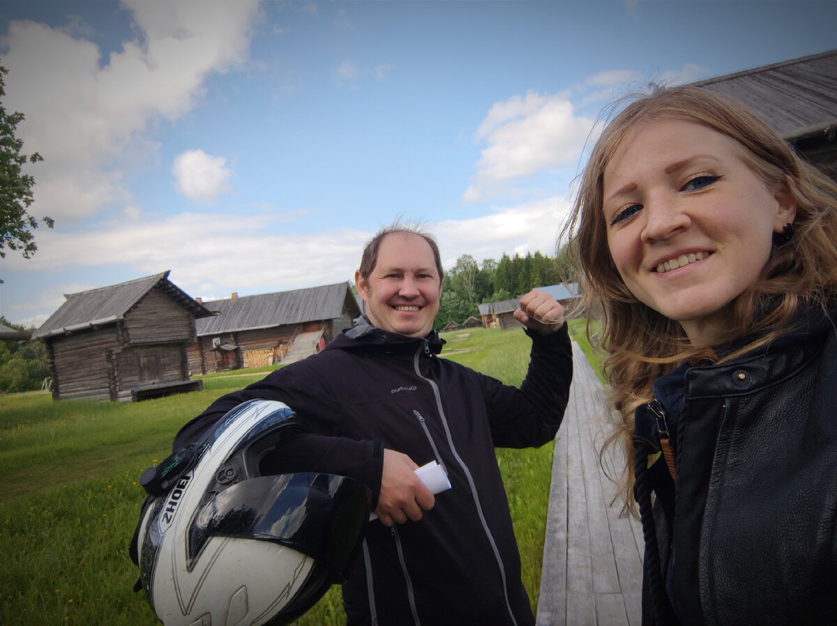 Прощаться было тяжело, но, к великому моему сожалению, погода испортилась - поднялся сильный ветер, на небе сгущались тучи. Время уже совсем убежало вперед, и мы сильно опаздывали. Попрыгав на мотоциклы, мы спешно продолжили путь в Вытегру.