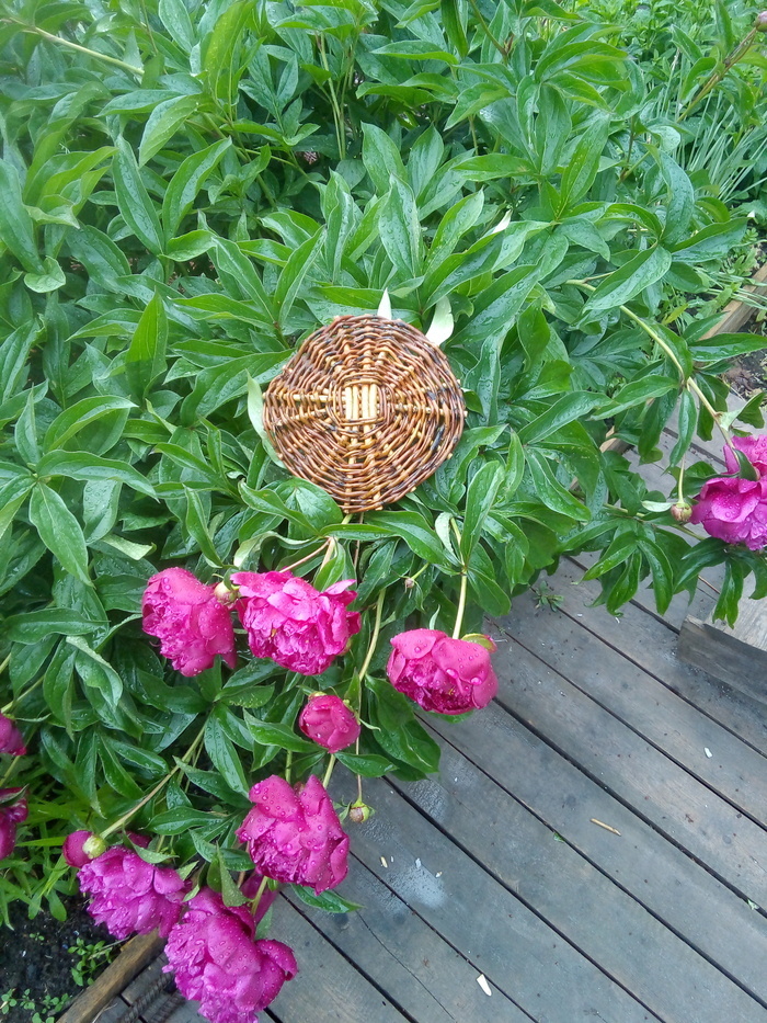 Конечно, я вас опять чуть обманул– схитрил. Делал несколько сразу, пока одна отмакает, другая плетётся. Из пяти одинаковых донышек, получилось пять разных корзинок.