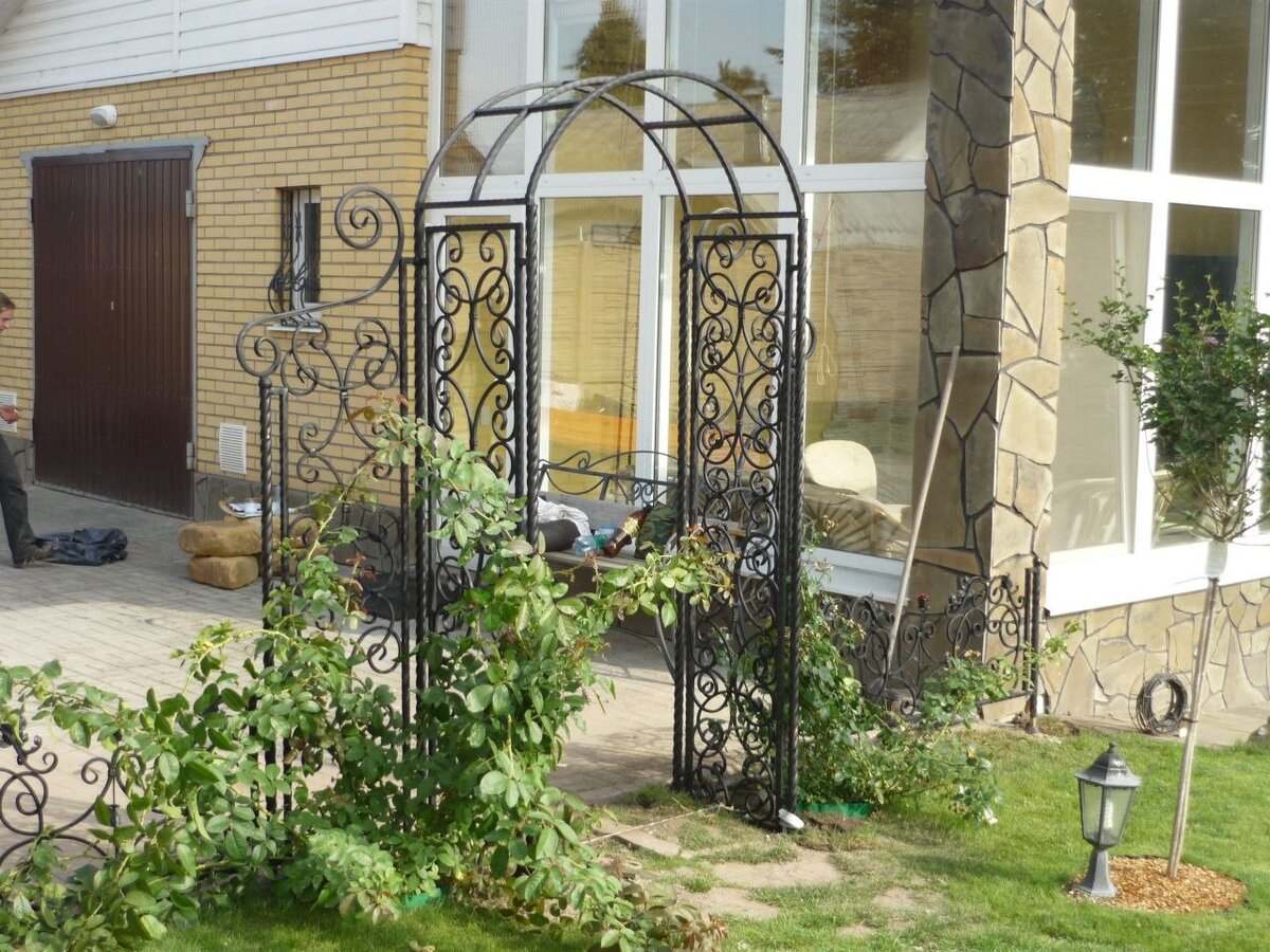 Главным преимуществом использования кованого железа для изготовления подобных сооружений являются эксплуатационные качества этого материала. Металл отлично переносит любую погоду - дождь, снег, жару, поэтому идеально подходит для размещения на улице. Кованые арки длительное время сохраняют первоначальные декоративные свойства, не требуя при этом сложного ухода. Кроме того, они способны выдерживать большой вес, поэтому служат прекрасной опорой для вьющихся растений.