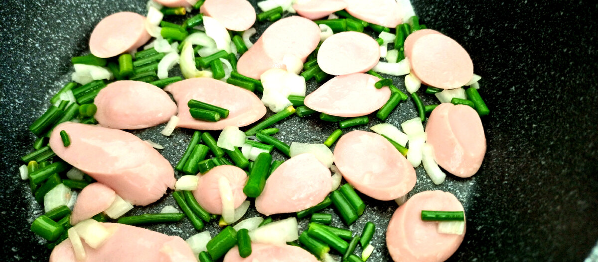 Готовили ужин вместе с мужем. Мне надо было куда-то пристроить чесночные стрелки, а у него назрел свой рецепт. В кои-то веки. А эти кои-то веки, надо заметить, бывают в год раза два, не больше. Ну и вот, Я взяла свою новую сковородку, пожарила чесночные стрелки, лук, сосиски... Разбила яйца, посолила, закрыла крышкой до готовности яиц Получилась такая вот яичница-отсебятина. На вкус - очень даже ничего. А муж тем временем замутил горячие бутерброды. Хлеб для тостов раскатывал скалкой, заворачивал в каждый кусочек вареную сосиску и ломтик сыра, потом каждый бутерброд обмакнул в яйцо и в панировочные сухари и обжарил со всех сторон. Вот, что получилось: Мне, конечно, такое нельзя, это слишком жирно для моего нежного организма, а муж ел с удовольствием. Я только яишенку поклевала и молочный коктейль со свежей клубникой. Как же всё-таки хорошо летом! Огурчики, ягоды, зелень... Всё своё, вкусное, свежее, своими ручками выращенное. Ляпота! Вот такая гастрономическая статья ещё сегодня на