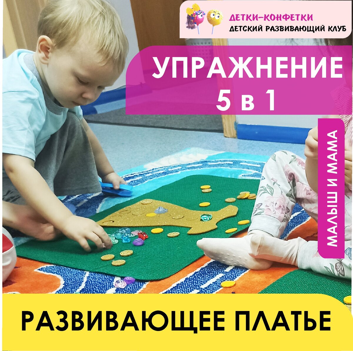 Самый нежный, самый чувствительный возраст - наши крохи до 3 лет. Сосредоточить и удержать их внимание очень сложно. Поэтому наши педагоги стараются разнообразить занятия с малышами новыми упражнениями и играми. Так у нас появилось "развивающее платье". Авторское пособие нашего клуба, разработанное педагогами и изготовленное по всем требованиям детских товаров. Яркое, красивое, многофункциональное. Оно полюбилось детям и на логопедических занятиях, а деток в младших развивающих группах просто было не оторвать! Под чутким руководством педагога Карповой Ирины Евгеньевны "развивающее платье" отработало с малышами функцию 5 в одном. Это и сортер, и рамка-вкладыш, и основа для первого простейшего дизайна. А ещё выполнение такого увлекательного задания для малышни сопровождалось вызыванием речи. Простейшие слова: ВОТ, ТУТ, ТАМ, ОП - пошли вход при украшении платья красивыми акриловыми "кристаллами". Поверхность у платья фактурная, приятно-шершавая. И это не случайно, а для развития тактильн