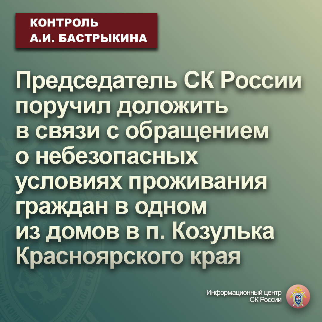 Председатель СК России поручил доложить в связи с обращением о небезопасных условиях проживания граждан в одном из домов в п. Козулька Красноярского края