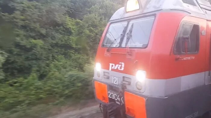Такое раньше мне попадалось только на крупных станциях где с десяток путей. И два поезда могли некоторое время ехать параллельно. Сейчас же два пассажирских поезда несколько километров шуровали по параллельным путям на перегоне попеременно обгоняя друг друга. Даже проводники вышли посмотреть на такое чудо. В конце одному пришлось всё таки уступить, так как дальше два пути сходились в один.