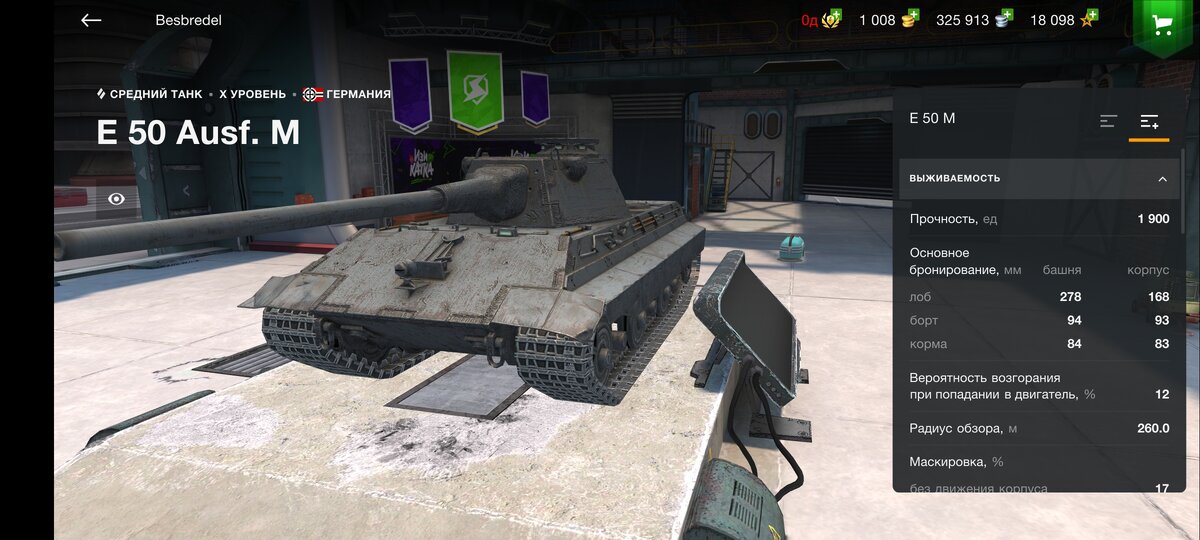 Средний танк Германии. Брони, как для среднего танка, предостаточно. Прощает ошибки. Динамика не самая лучшая среди СТ, но и стоит учитывать вес данной махины)