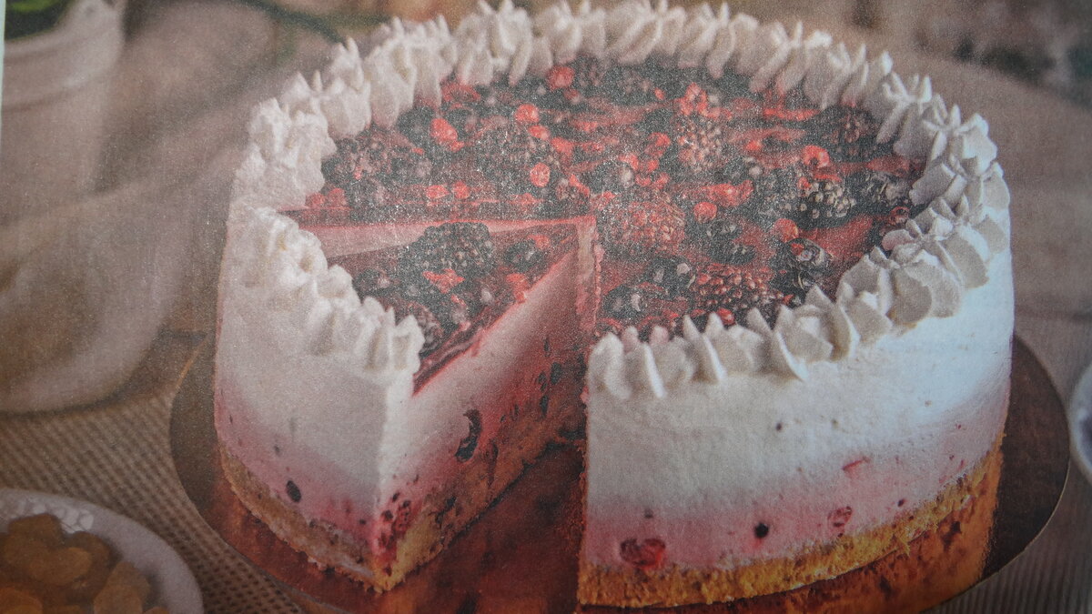 Сладко ешка Анна Харитонова решила порадовать всех себе подобных удивительным рецептом. Она его изобрела на день рождение своей дочурки. Она пишет что торт очень вкусный, но имеет один недостаток. Теперь дочка хочет есть его каждый день. Для изготовления вам понадобятся: Яйца - 3 шт. Мука - 130 г. Сахар - 100 г. Крахмал - 1 ст.л. Молоко - 60 мл. Разрыхлитель - 0,5 ч.л. Ванилин - 1 щепотка. Чёрная смородина, ежевика, малина - по 150 г. Сахарная пудра - 100 г. Сливки (33%) - 3 стакана. Желатин - 40 г. Сахарная пудра -150 г. Смесь для желе "Ягодная" 50 г. Способ приготовления: Разъёмную форму выстелить пергаментом. Включить духовку, выставив 180*. Муку и крахмал просеять. Желатин залить холодной водой. Яйца, сахар и ванилин взбить. Ввести муку, молоко и перемешать. Перелить тесто в форму и выпекать при 180* 20-25 мин. Бисквит вынуть из формы, остудить, срезать тонкий верхний слой. Корж уложить в остывшую форму. Взбить сливки с пудрой. Ягоды промыть и удалить плодоножки. Ча