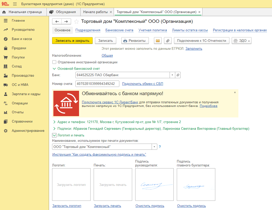 В программе 1С Бухгалтерия 3.0 в печатной форме документов "Счет покупателю", "Реализация (акт, накладная)" можно вывести факсимильные подписи Руководителя, логотип и печать организации. Факсимиле руководителя организации, главного бухгалтера и кассира настраиваются в карточке организации. В 1С Бухгалтерии 3.0 установка факсимильных подписей, логотипа и оттиска печати в документах может быть выполнена следующим образом: Вы всегда можете заказать услуги по 1с, а также приобрести, обновить программы 1С с помощью наших специалистов, написав нам на e-mail: info@topyc360.ru или в Телеграм https://t.me/uslugi1ctopyc