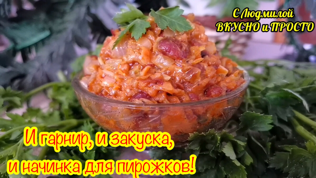Сегодня мы с вами сделаем очень вкусное и полезное блюдо, оно может быть и гарниром, и начинкой для пирожков, а можно это блюдо подать в качестве закуски. Итак начнём. Лук мелко режем. Морковь трём на крупной тёрке. На смеси сливочного и растительного масла обжариваем мелко нарезанный лук и морковь, тертую на крупной тёрке. Теперь выкладываем сюда баночку консервированной фасоли в томате (вместе с соком). Толкушкой для толчёнки давим фасоль. Добиваться чтобы вся фасоль превратилась в пюре необязательно. Теперь солим, перчим по вкусу, и наше блюдо готово! Мне очень нравится делать пирожки с такой начинкой, но можно это блюдо подать в качестве гарнира к мясу или рыбе, или в качестве закуски. Если будете делать такую закуску то добавьте пару зубчиков чеснока. 🔺✅👉 уверена, что вам понравятся эти рецепты: РЕЦЕПТ: Морковь - 300 г Лук - 200 г Консервированная красная фасоль в томате - 1 банка Растительное масло - 2 ст ложки Сливочное масло - 40 г Соль, перец по вкусу З