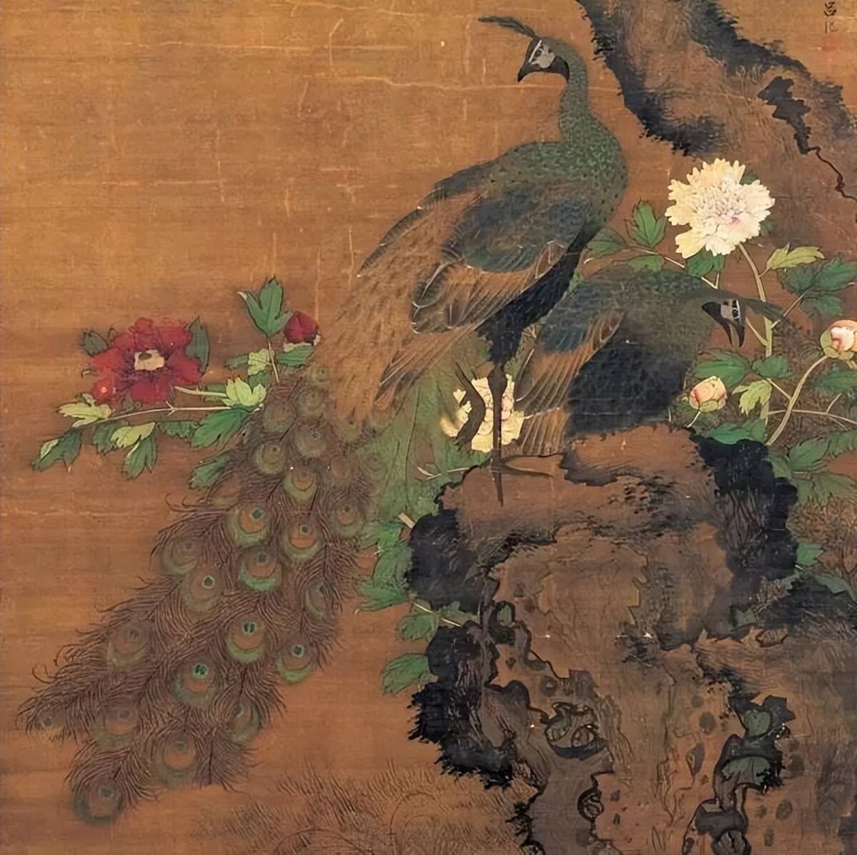 Именно во время династии Тан павлин получил большее распространение: он был изображён на тыльной стороне зеркал, ведь согласно легенде, павлины начинают танцевать, когда видят своё отражение. Более того, в этот период они были названы «королями птиц» и стали изображаться вместе с пионами – «королями цветов». Бянь Луань – великий художник танской эпохи, пишущий в стиле «хуа няо», является автором большого количества картин с участием павлинов, наиболее известной из которых является холст «Павлин и пионы». Эта птица иногда изображается в благожелательных орнаментах. Образ павлина так же, как и оленя и фазана, означает пожелание быстрой и успешной карьеры и достижения высоких постов на службе. Также павлин может использоваться в качестве декора китайского костюма, наравне с такими птицами как журавль, сорока, фазан и утка-мандаринка.