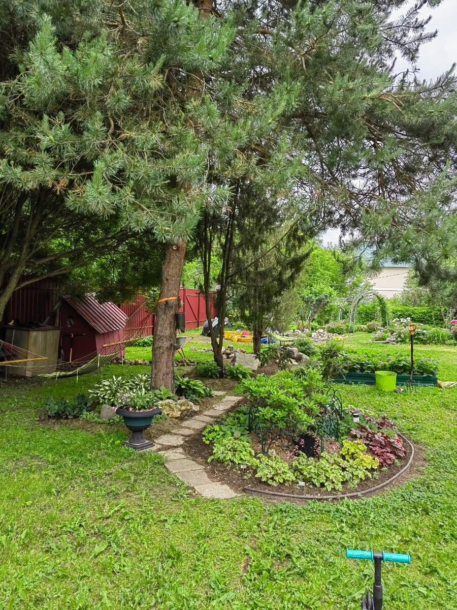 мам что,дорогие мои.Доброго всем дня и продолжение моей "Каменной истории". Начало здесь⬇️ Как я уже писала,создание теневой клумбы с участием камней затянулось на целых три дня. ❗Итак,вашему вниманию ДЕНЬ ВТОРОЙ и ТРЕТИЙ. Начну,пожалуй,с небольшого пояснения и фотокомментария. Этот цветник -третья часть теневой клумбы. Начало моего "островного "цветника -под сосной. Этот райский уголок в ажурной тени создавался этой весной специально для рододендронов . Чуть позже к основному цветнику добавился небольшой островок с хостами,примулами и ландышами,он вокруг ствола сосны за дорожкой под гамаком. Чуть дальше ,между можжевельниками давно ,очень давно напрашивалось продолжение,там просто были свалены лишние камни, и до переустройства этого теневого уголка никак не доходили руки. Нужен был "поджопник"для ускорения.Им стали две роджерсии,приобретенные в питомнике . Я о них писала⬇️ Этим красавицам нужен простор(с этим у меня нет проблем)и тенек,с которым в моем саду дефицит. Вот это заб