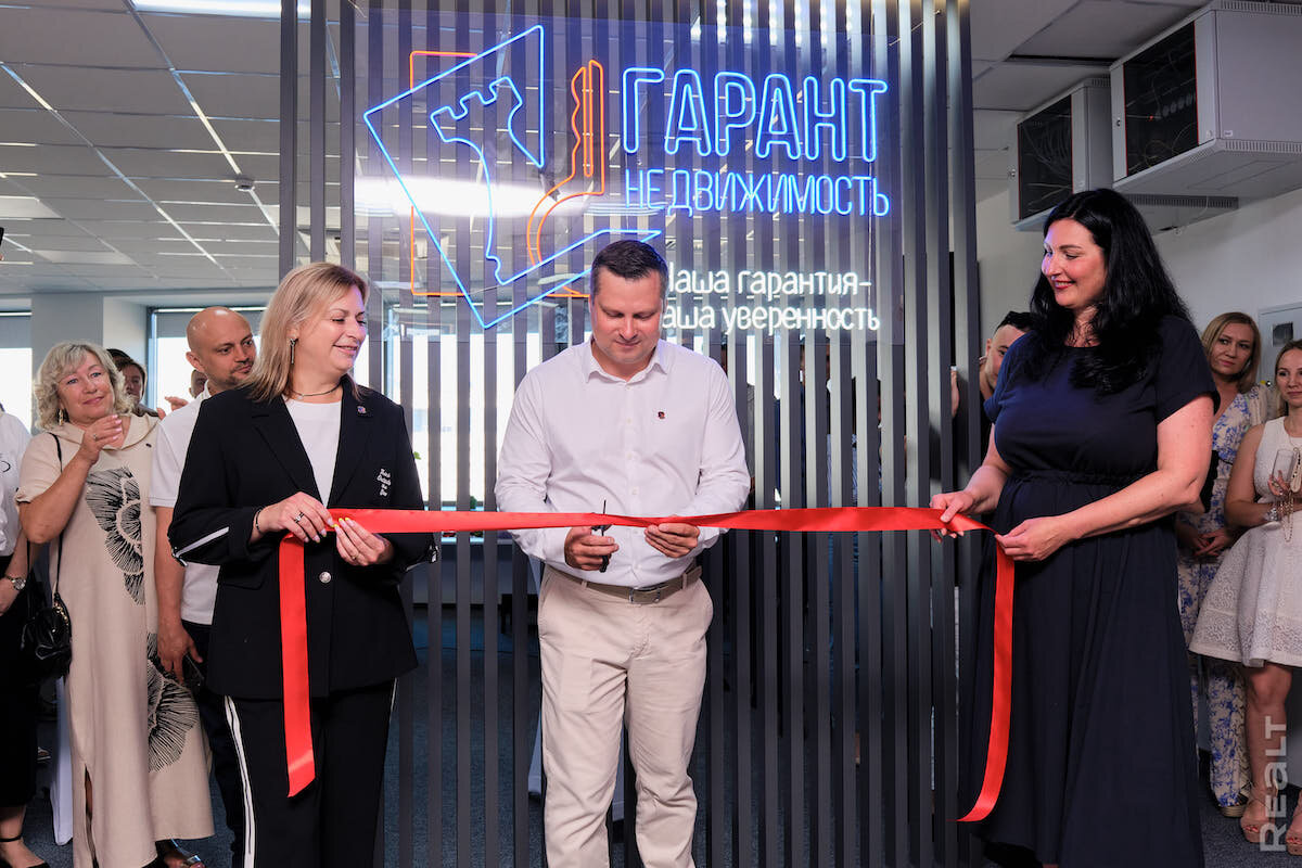 Руководители «АН Гарант Недвижимость» торжественно перерезали красную ленту — и открытие состоялось. После этого всех пригласили смотреть их новые кабинеты. Просторные, светлые, с огромными окнами, из которых виден весь Минск. Новый офис находится в самом центре города: