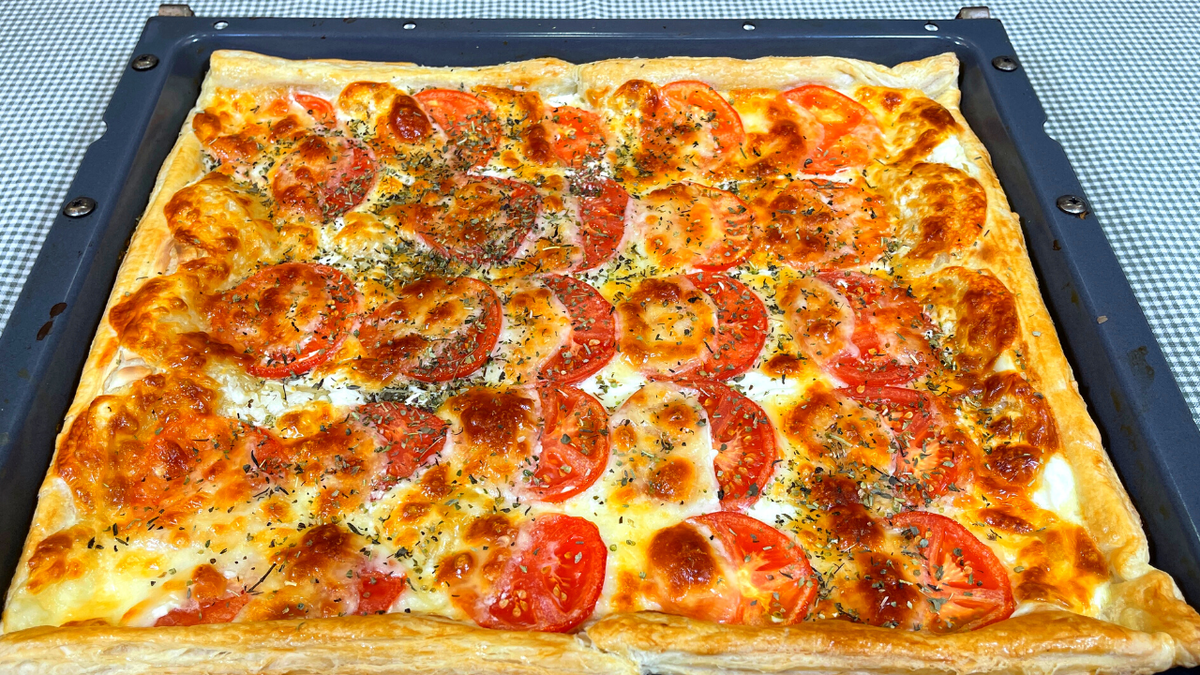 Сегодня я приготовлю пиццу по очень простому и быстрому рецепту! Для приготовления нам понадобится: слоеное тесто бездрожжевое, сыр моцарелла, сливочный творожный сыр, помидоры, яйцо, растительное масло. Две пластинки бездрожжевого теста (500 грамм) необходимо раскатать не очень тонко, размер делаю по противню. Дно противня смазываю чуть- чуть растительным маслом и переношу туда раскатанное тесто. Затем 300 грамм моцареллы нарезаю тонкими кружочками, сливочно-творожным сыром смазываю все тесто и сверху укладываю кусочки моцареллы. Помидоры нарезаю не сильно толстыми кружочками и укладываю на противеь, чередуя с сыром. Можно добавить колбасу или другой мясной продукт по желанию. Взбалтываю один куриный желток и смазываю края пиццы. Теперь заготовку пиццы убираю в заранее разогретую духовку до 200 градусов и готовлю 20-25 минут. Прошло время, пицца готова! Сверху я посыпаю итальянскими травами. Приятного аппетита, а как вы готовите пиццу?