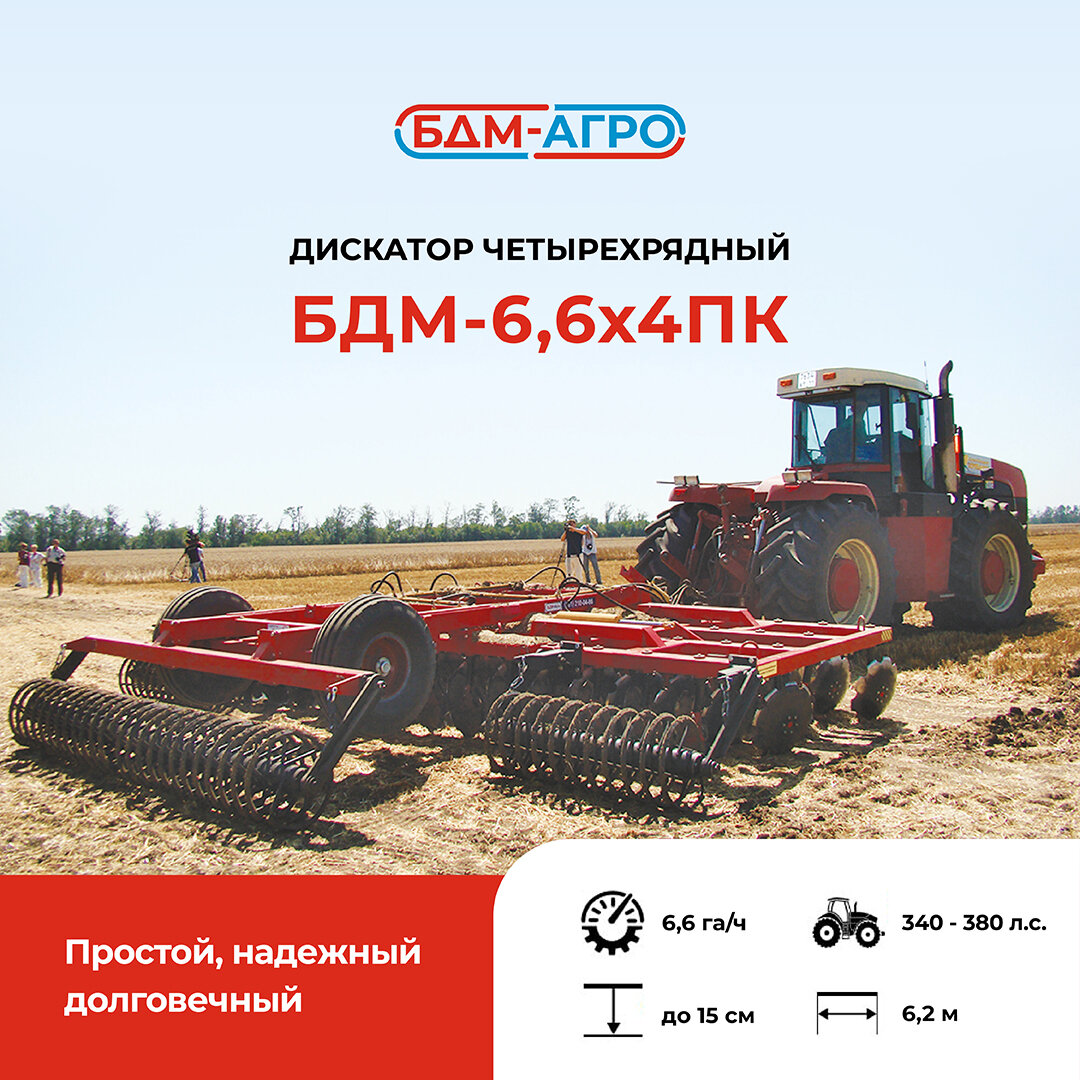 Когда говорят о чем-то крепком, надежном и долговечном, обычно сравнивают это со швейцарскими часами. Или с первыми моделями телефонов «нокиа», с двигателями японских машин с миллионными пробегами или с характером настоящего мужчины, который, если сказал, то сделал, и точка. В этом же ряду и наш дискатор БДМ-6,6х4ПК – популярная модель дискатора, которая годами служит верой и правдой в хозяйствах. Четырехрядное секционное орудие, конструкция – крепкая, простая и надежная. Раз за разом дискатор выходит в поле и выполняет все те задачи, которые перед ним ставят, и вы довольны результатом. Создан из высококачественных материалов, это классическое орудие, сделанное, чтобы служить долгие годы. Дискатор с настоящим мужским характером. Посмотрите технические характеристики орудия в каталоге на нашем сайте. Увидеть БДМ-6,6х4ПК в работе можно на этом видео Звоните +7(861)238-74-39,расскажем подробно и ответим на все ваши вопросы!