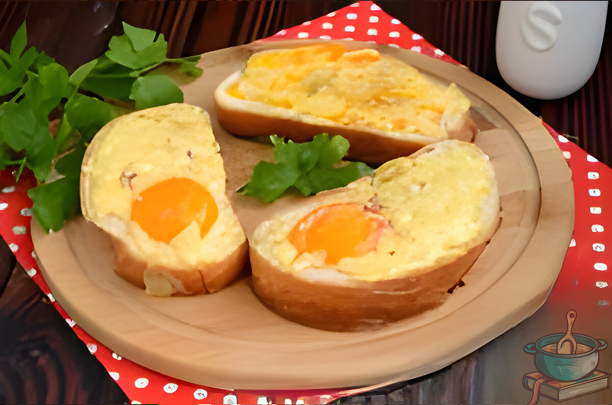 Все мы любим яичницу на завтрак, а если она с сыром, с колбаской, да ещё и в хлебе? Всем привет! Сегодня я хочу поделиться с вами великолепным рецептом "Яичницы в хлебе с сыром и колбасой". Яичница на завтрак всегда радует нас своим вкусом и простотой приготовления, а если добавить сыр и колбасу, получится по-настоящему насыщенное и аппетитное блюдо. Яичницу на завтрак можно приготовить более оригинальным и интересным способом. Яичница в хлебе, которую иногда называют "яичница по-бирмингемски" или "яичница по-французски", действительно прекрасно сочетает в себе простоту и вкус. Приступим! Ингредиенты: Готовим: Для приготовления блюда, пожалуйста, подготовьте все необходимые продукты по списку. Если у вас есть целый хлеб, отрежьте от него три ломтика толщиной 1,2-1,5 см. В качестве начинки мы рекомендуем использовать колбасу, но также можно добавить кубики свежего сладкого перца или зеленого горошка, чтобы освежить и разнообразить вкус. Для приготовления блюда, возьмите колбасу и