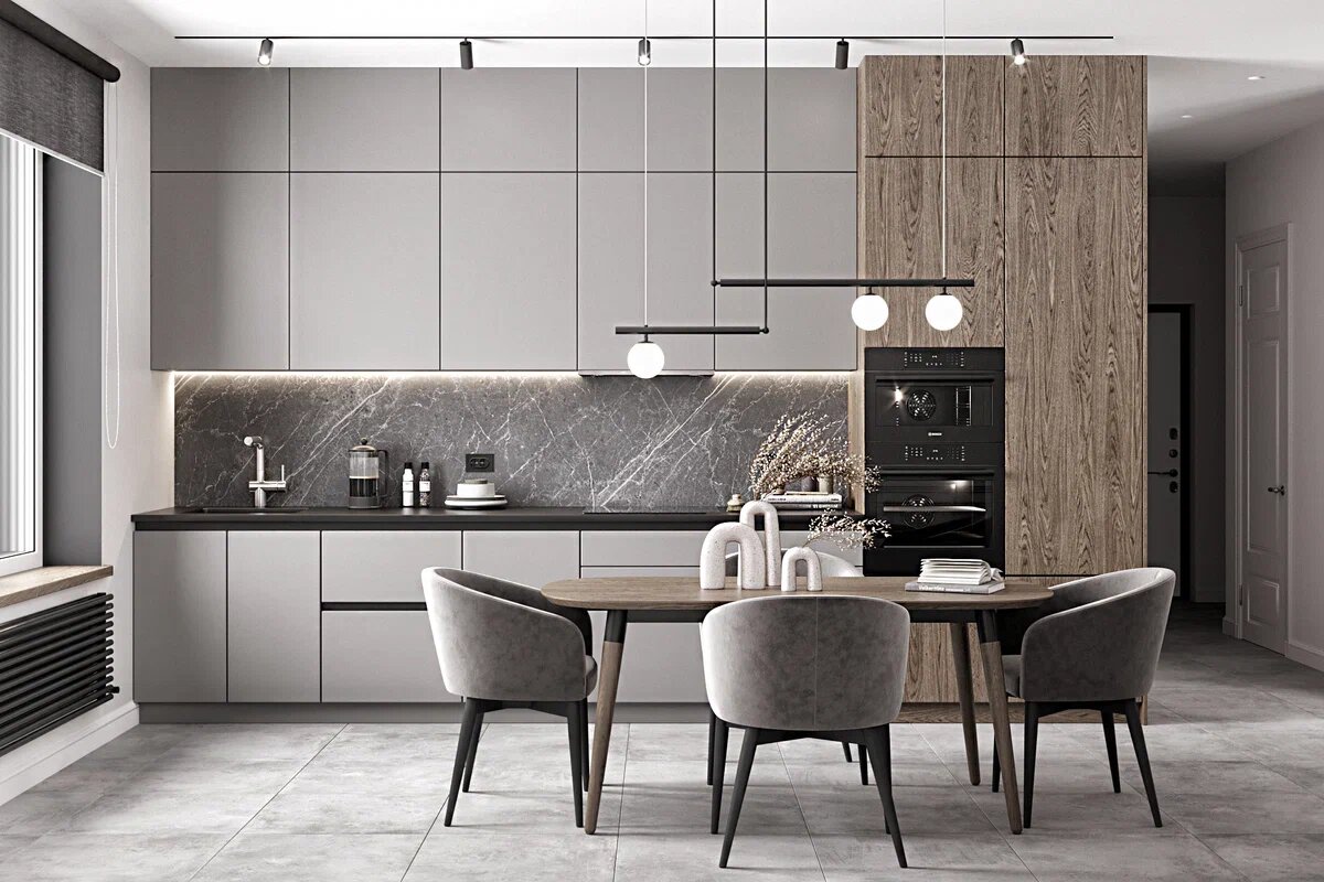 В дизайн интерьера кухни в современном стиле есть масса лайфхаков, которые не видны невооруженным глазом. В этом статье мы постараемся раскрыть некоторые секреты и показать, как интерьер может быть красивым, функциональным и модным одновременно. Мат, глянец и другие «проблемные» материалы Первое, что стоит сделать — это развеять мифы о непрактичности некоторых поверхностей. Например, часто можно встретить комментарии о том, что на глянце будет постоянно видна пыль, на мате или черном цвете — отпечатки пальцев, и что нужно будет постоянно протирать похожие «проблемные материалы» и поверхности. Тут есть важный фактор, который не учитывается непрофессионалами — грязь скапливается на поверхности любого типа, но создавать интерьер в стиле «чтобы не мыть по полгода, но грязь была, просто ее не было видно» — не в интересах наших клиентов. Факт! Модный интерьер можно сделать без ущерба практичности и эргономики. Важно советоваться с дизайнером интерьера в каждом конкретном случае. А также пони