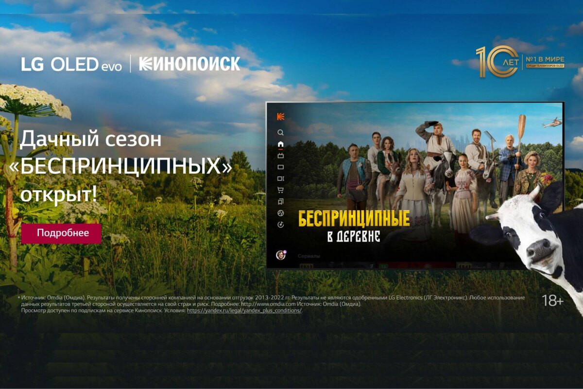 Комедия «Беспринципные в деревне» является полнометражным продолжением сериала, снятого по мотивам новелл Александра Цыпкина. История начинается так: отставной генерал Хадяков решает отпраздновать юбилей не на Патриках, а в настоящей русской деревне. Приглашены все любимые герои, но праздник идёт не по плану. Посмотреть это ироничное кино можно на Кинопоиске, а оценить сочную летнюю картинку стоит на экране смарт-телевизора LG OLED evo поколения G3. Почему стоит открыть летний сезон «Беспринципные в деревне» с телевизорами LG OLED EVO? Действие фильма «Беспринципные в деревне» разворачивается в деревне на берегу реки жарким летом, и зрители могут наблюдать весь спектр сельских красок: от живописной природы до традиционных праздничных яств. Погрузиться в сельские приключения вместе с героями поможет реалистичное изображение, которое становится возможным благодаря интеллектуальному процессору a9 Gen 6. Благодаря достижениям в области глубинного обучения процессор улучшает объекты на пере
