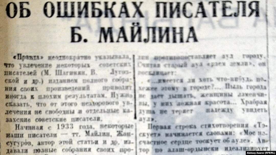 Сабит Муканов написал доносы на половину казахских писателей. Сабит Муканов, председатель Союза Писателей Казахстана, в открытую в газетах топит своего коллегу талантливого писателя Беимбета Майлина за «контрреволюционную галиматью». Майлина расстреливают в 1938 году.